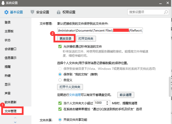 QQ也一样,进入设置页面的文件管理中,点击【更改项目】即可。