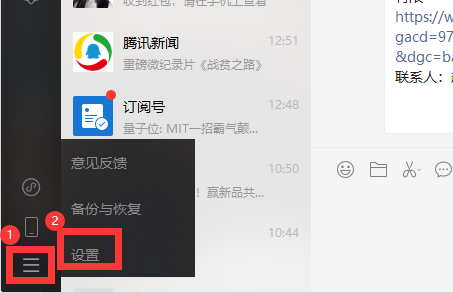 第一步,登录电脑版微信,并点击左下角【三】形状的按钮,然后点击选择【设置】选项。