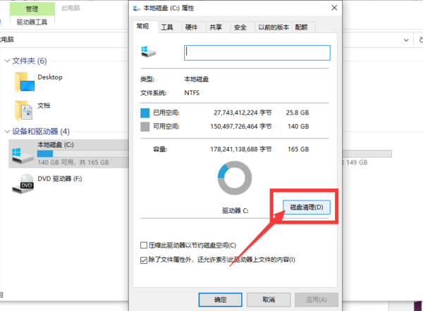 第二步,在【属性】对话框的【常规】选项卡中,点击选择【磁盘清理】选项。