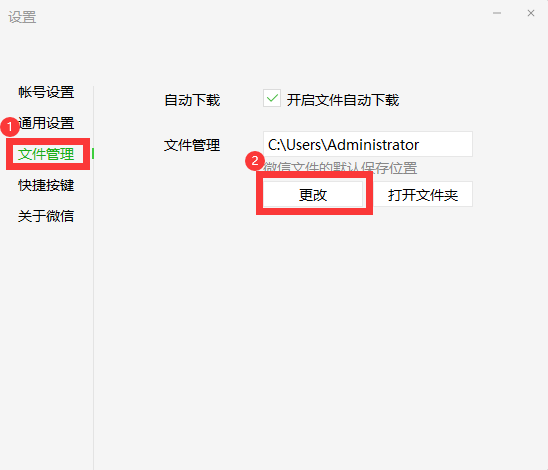 第二步,进入【设置】对话框页面之后,点击左侧的【文件管理】选项,然后点击【更改】按钮。