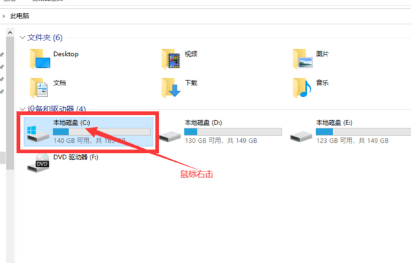 第一步,打开【我的电脑】,鼠标右击【C盘】图标,选择下拉菜单的最后一项【属性】。