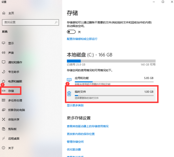 第一步,在电脑桌面空白处,鼠标右击选择【显示设置】,进入到设置对话框之后,在左侧点击选择【存储】选项,在页面右侧点击【临时文件】。