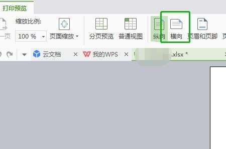 第三步、点击打印预览左上方“横向”即可将打印纸张更改为横向打印,这样横向表格就能显示完全。