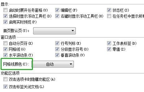 在弹出的选项对话框中,点击【视图】,找到“网格线颜色”将其更改为想要更换的颜色,点击确定;