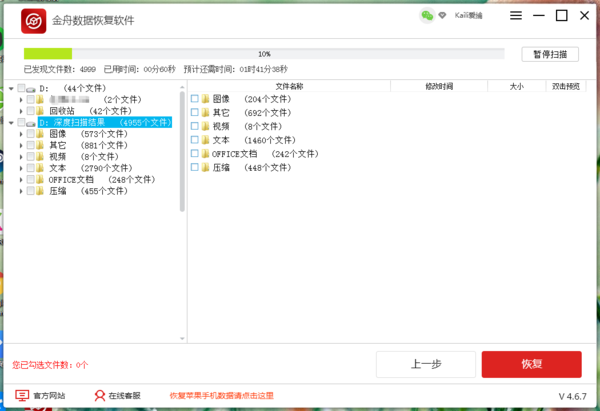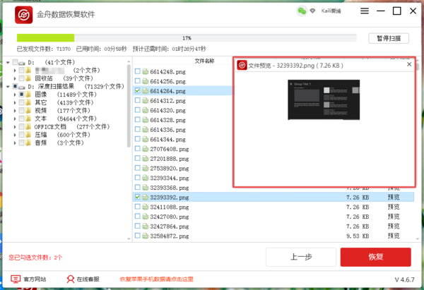 第五步,但是金舟数据恢复软件拥有边扫描边预览的功能,我们在软件扫描的过程当中,可以对软件所扫描到的文件进行预览,找到需要进行恢复的文件后,我们就可以停止扫描,从而能够为我们的工作节省一定的时间。