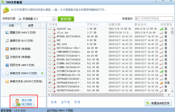 另外,如果文件很难恢复,那就点击左下角的【提交问题给工程师】按钮,会给出一个解决方案的。