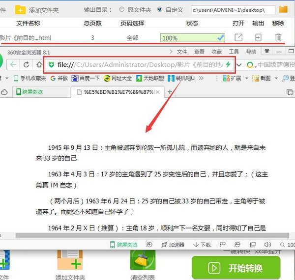 第三步,点击右上角的【开始转换】就完成Word转HTML了,如果想要更换文件存储位置,可以勾选【自定义】按钮,,然后选择新的存储位置即可。