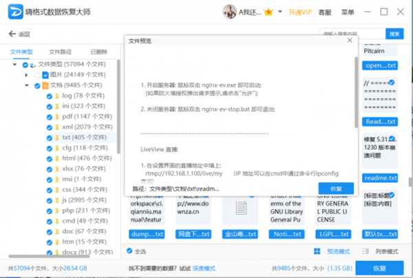 第二步,嗨格式数据恢复大师会自动扫描已经被删除数据,如果扫描出来的图片太多,不好确定需要恢复的是哪些,可以点击【预览】来挑选。最后,点击右下角的【恢复】按钮就可以了。