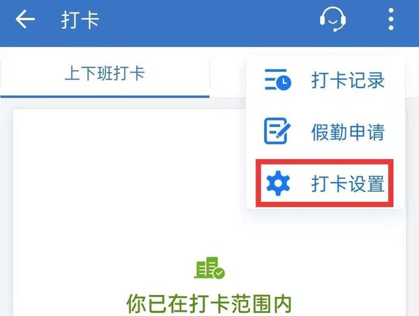 第三步,点击打卡页面右上角的三个点形状【…】的按钮,展开之后选择【打卡设置】。