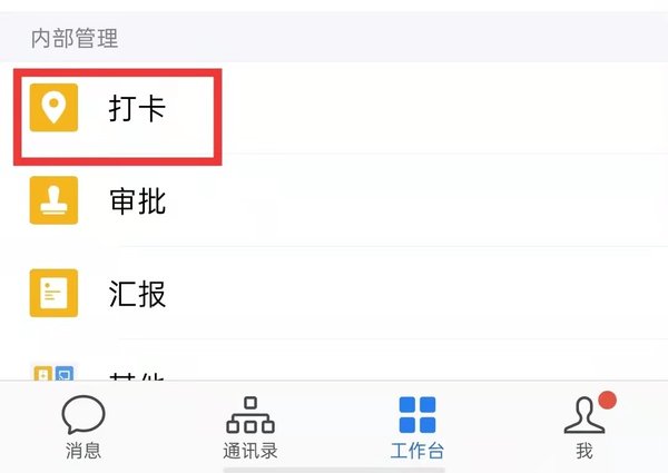第二步,点击【打卡】选项,并进入打卡页面。
