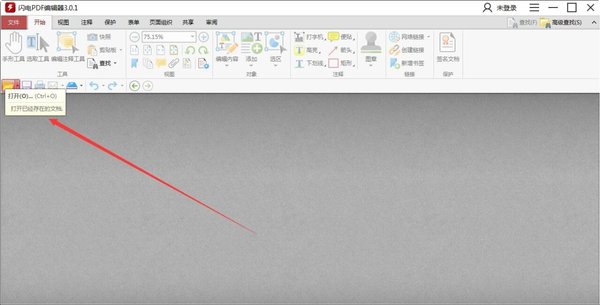 第一步,在电脑上运行闪电PDF编辑器软件,如下图所示位置,点击【打开】,把需要去水印的PDF文件加进来。