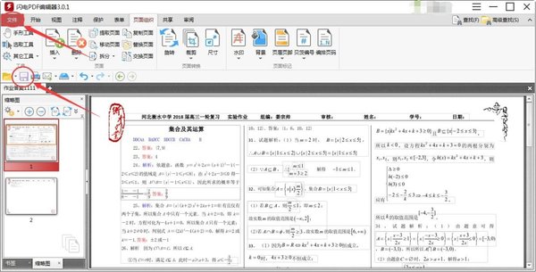 第二步,PDF文档加进来之后,在闪电破地方编辑器页面的上方工具栏上,点击选择【页面组织】选项。
