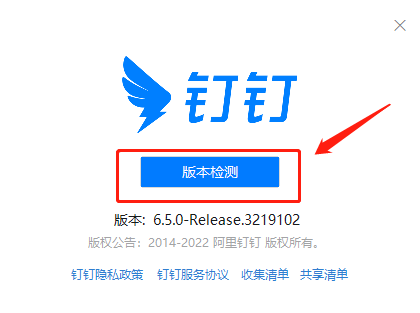 这时会弹出当前版本号的弹窗,点击“版本检测”,如果需要更新,按照提示点击安装最新版本。