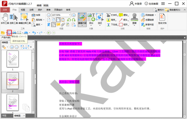 第八步,最后我们直接点击界面上半部分当中的【保存】按钮,即可对PDF文档进行保存。