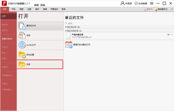 第二步,进入到软件的主界面后,我们点击界面下方的【浏览】功能,然后将需要进行处理的PDF文档打开来。