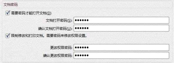 第四步,接下来就会跳转到密码设置对话框,可以设置PDF文档查看密码以及修改打印的密码,可以根据具体需要来选择PDF文档加密的选项,并设置好密码即可。