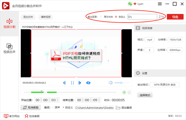 第五步,而第二种方法是,直接在界面底部的【开始位置】和【结束位置】上,直接输入想要截取视频段落的时间点即可。