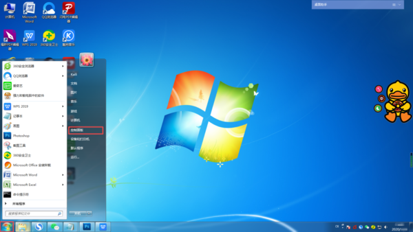 第一步,在电脑桌面的左下角找到【开始菜单】按钮,然后点击打开,接着在弹出的选项中,选择【控制面板】功能,并点击进入。