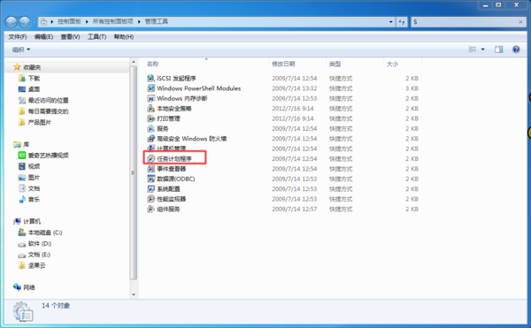 第四步,此时就进入到系统的管理工具界面当中了,在此界面当中,我们找到【任务计划程序】功能,并双击打开。