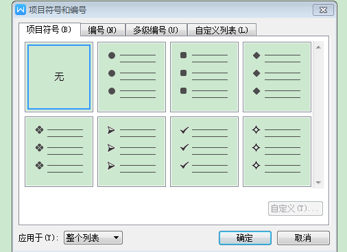 点击项目符号,可以添加预设符号,也可以添加自定义符号,在自定义符号中可以选择需要的符号、编号、多级编号等进行添加。其中编号和多级编号也可以在项目符号键旁边的功能键进行添加。