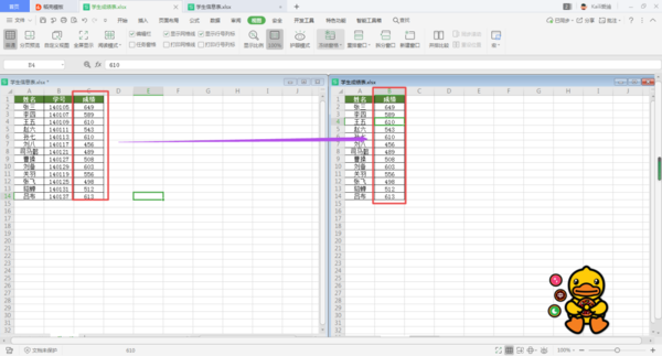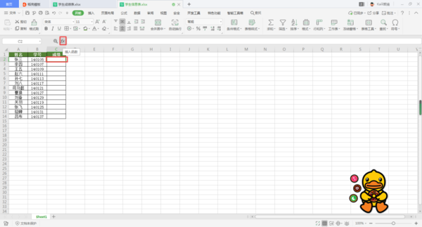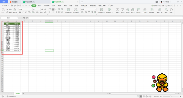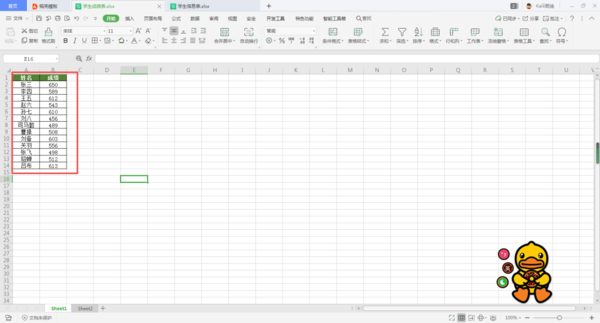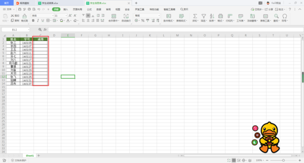 第二步,接着我们在第二个学生信息表当中,插入【成绩】一列。