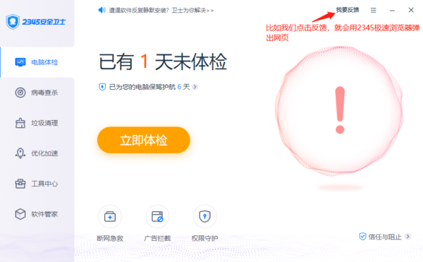 1、2345安全卫士可以协助保护2345加速浏览器的安全,相当于“双保险”的作用。