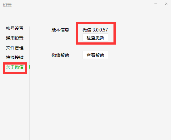第三步,进入到设置对话框,然后点击选择最下方的【关于微信】选项,在右侧就会显示微信电脑版的版本情况,点击【检测更新】即可更新为最新版的微信电脑版。