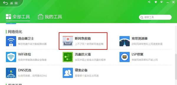 还可以在360安全卫士的工具中,点击使用【断网急救箱】。