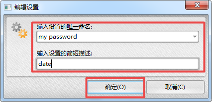 第九步,此时软件就会弹出新建密码的设置窗口了,在此窗口当中,我们可以给密码定义名称,还可以为密码设置简短的描述,全部设置好以后,点击窗口上的【确定】按钮即可。
