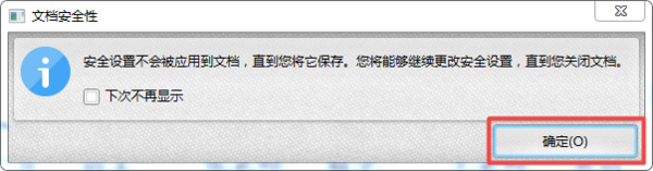 第十一步,接着软件会弹出【文档安全性】的提示窗口,我们点击【确定】按钮。