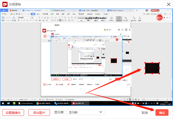 第四步,摄像头录制设定完成之后,如下图所示,摄像头的录制框可以移动至合适的位置,最后点击页面右下方的【确定】。