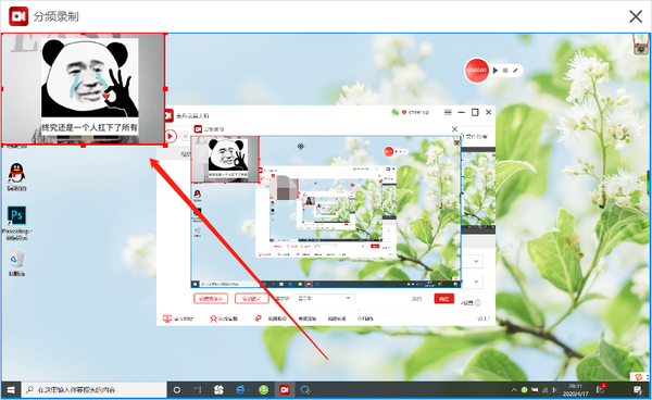 第四步,如下图所示,直接用鼠标拖动录制窗口,也可以改变摄像头的大小。