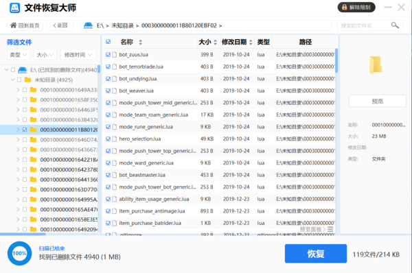 1.?可以通过“文件路径”快速定位丢失文件数据的具体位置,过滤多余的数据。