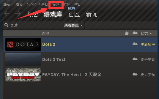 第一步,打开已经安装好的Steam,并进入到Steam平台中,在页面上方的选项中,找到并点击【好友】选项。