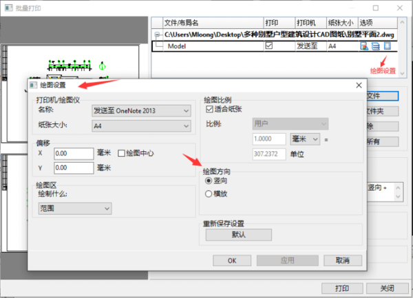 第四步,然后再点击右下角的【绘图设置】按钮,对打印纸张的大小以及打印方向等参数进行设置,设置完成之后也是点击【OK】即可。