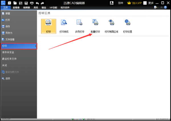 也可以在页面上方的工具栏中点击【VIP功能】选项,并在下面的工具中点击【批量打印】选项进行打印图纸也是可以的。