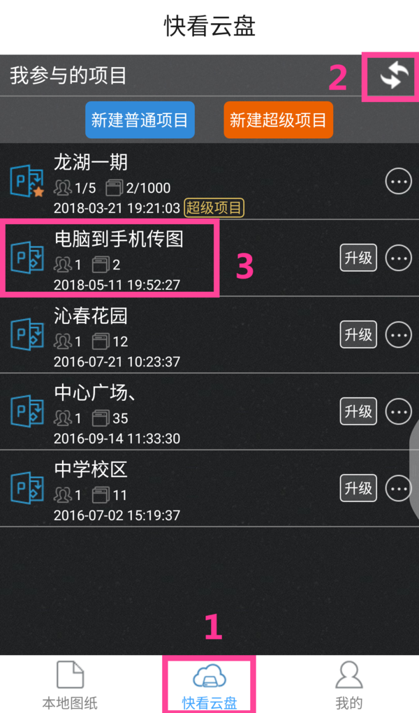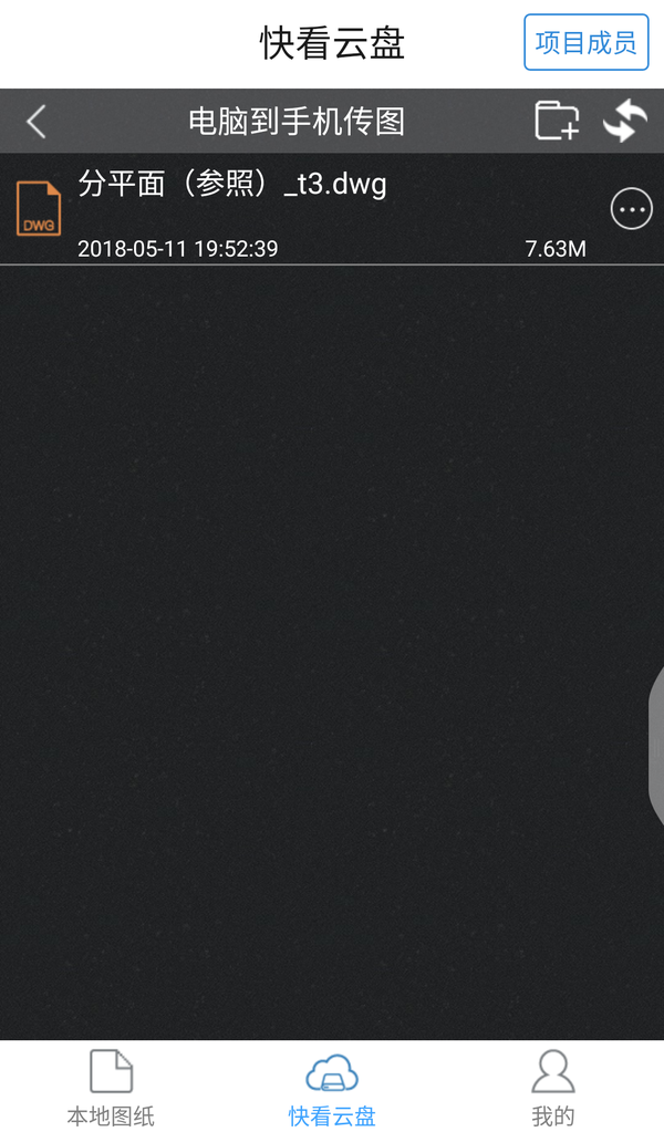 第五步,会员登录成功之后,直接切换到【快看云盘】,并点击右上角的【刷新】按钮,就会看到所有快看云盘里的CAD图纸,选择需要查看的图纸,点击查看即可。
