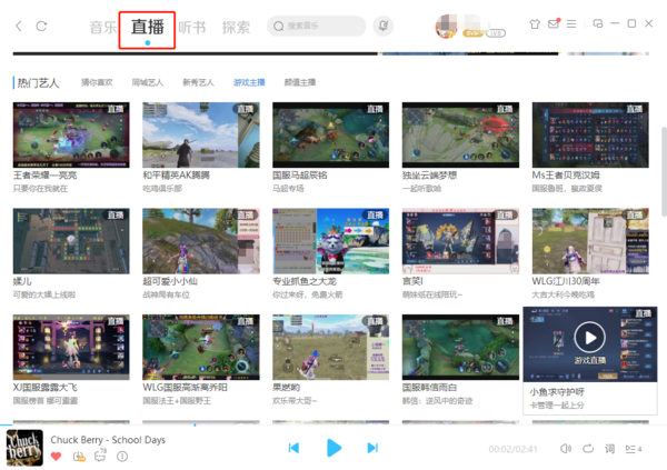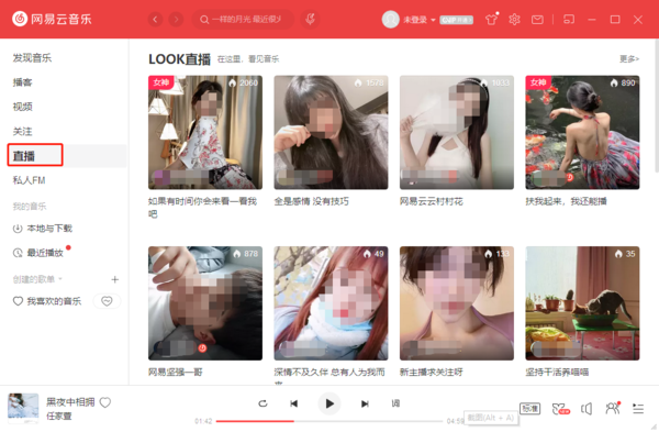 网易云音乐就更用多说了吧,深夜网易云可不是一件空话,而网易云音乐电脑版自然也是有音乐直播功能的。而且不同于前面两款软件,网易云音乐电脑版的直播,更专注于音乐直播,没有太多的游戏和其他类直播。
