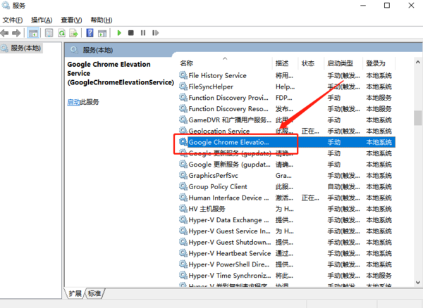 然后,在服务界面找到谷歌浏览器,双击进入属性设置界面。