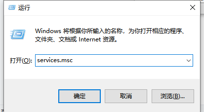 首先,按下键盘上的“win+R”,输入services.msc命令,接着点击“确定”。