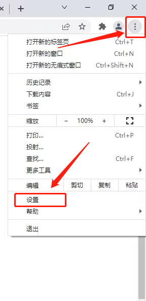 首先,右上方三个点样式的“菜单”,然后在出现的菜单中点击“设置”。