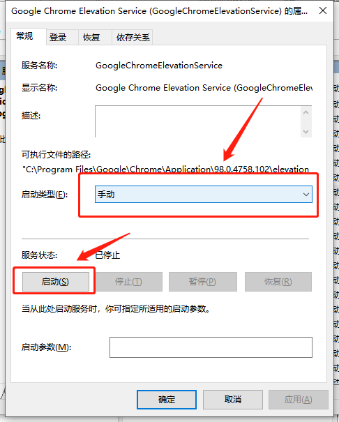 打开属性窗口,在启动类型的下拉按钮中选择“手动”,然后在下面的服务状态设置中选择启动,最后点击“确定”。