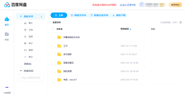 百度网盘应该是很多人接触到的第一款网盘类软件版,是由百度公司开发推出的个人云服务产品,不仅可以上传存储多种格式的文件,还可以添加好友并分享资源链接。在存储空间上,初始的用户只有5个G的空间,不过注册下载APP或者是购买会员就能不断的扩容。