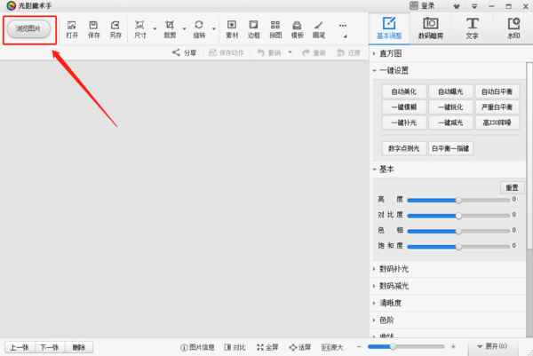 第一步:在电脑上打开光影魔术手后,首先点击页面左上角的“浏览图片”选项。