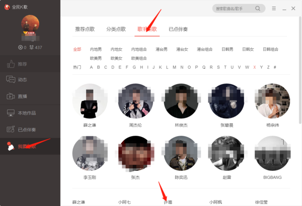 3、歌手点歌。全民k歌也将以歌手将歌曲分类,这样对于喜欢某一歌星的用户,就非常爽了;比如周杰伦的歌迷就找周杰伦的歌唱,就可以用到该分类。