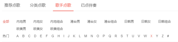方法二:同样是点歌界面,我们在【歌手点歌】模块中,找到【许嵩】并点击,亦可找到许嵩的各种歌,和方法一是殊途同归。