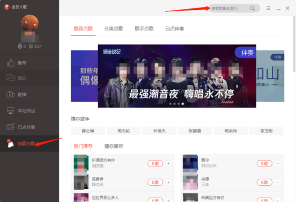 了解了这么多,我们也来实际操作一下,看看在全民k歌中如何找许嵩的歌。