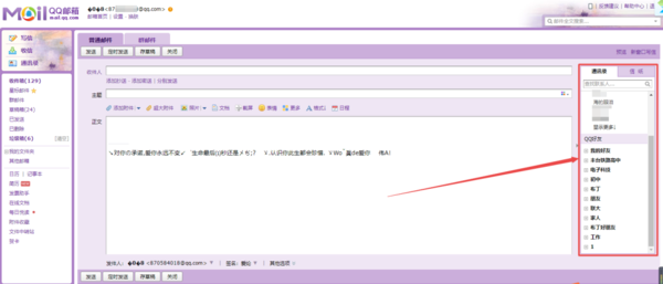 打开电脑上的任意一款浏览器,然后输入QQ邮箱并进入。进入到QQ游戏界面当中后,点击【写信】功能。然后在写邮件界面的右侧,会有一个通讯录列表,这里我们可以跟自己的QQ好友列表进行一个对照,看看少了哪一个好友,那么就是哪个好友把你删除了。