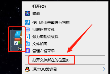 找到电脑上的2345好压快捷方式,选中后单击鼠标右键,选择“打开文件所在的位置”选项。
