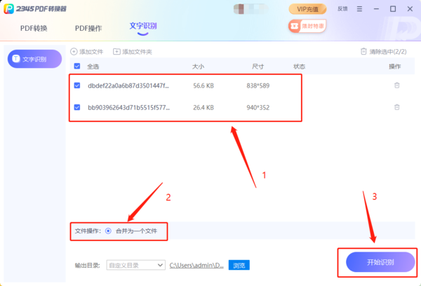 如果需要同时识别多张图片,可以选择将识别出来的文字合并成一个文件,再点击“开始识别”按钮就完成了。